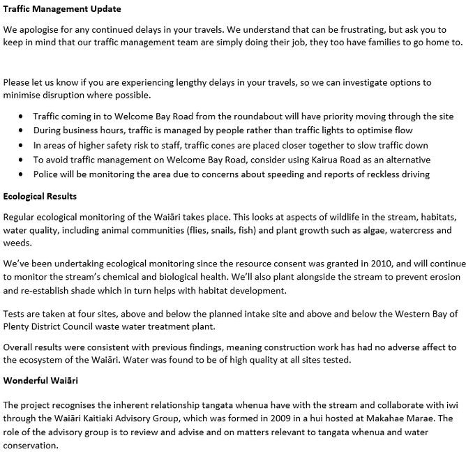 We’ll update you regularly on the progress of the works. If there is anyone else you think should be included in these updates, please let us know Jennifer.pearson@tauranga.govt.nz, so we can keep them updated via email or phone 07 577 7000.