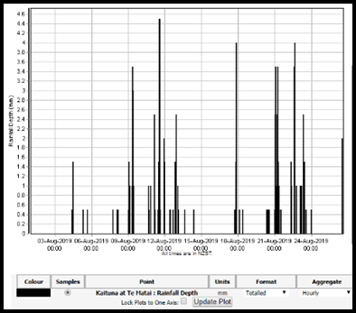 Rainfall depth taken from Kaituna at Te Matai for the month of August, Source: BOPRC Live monitoring